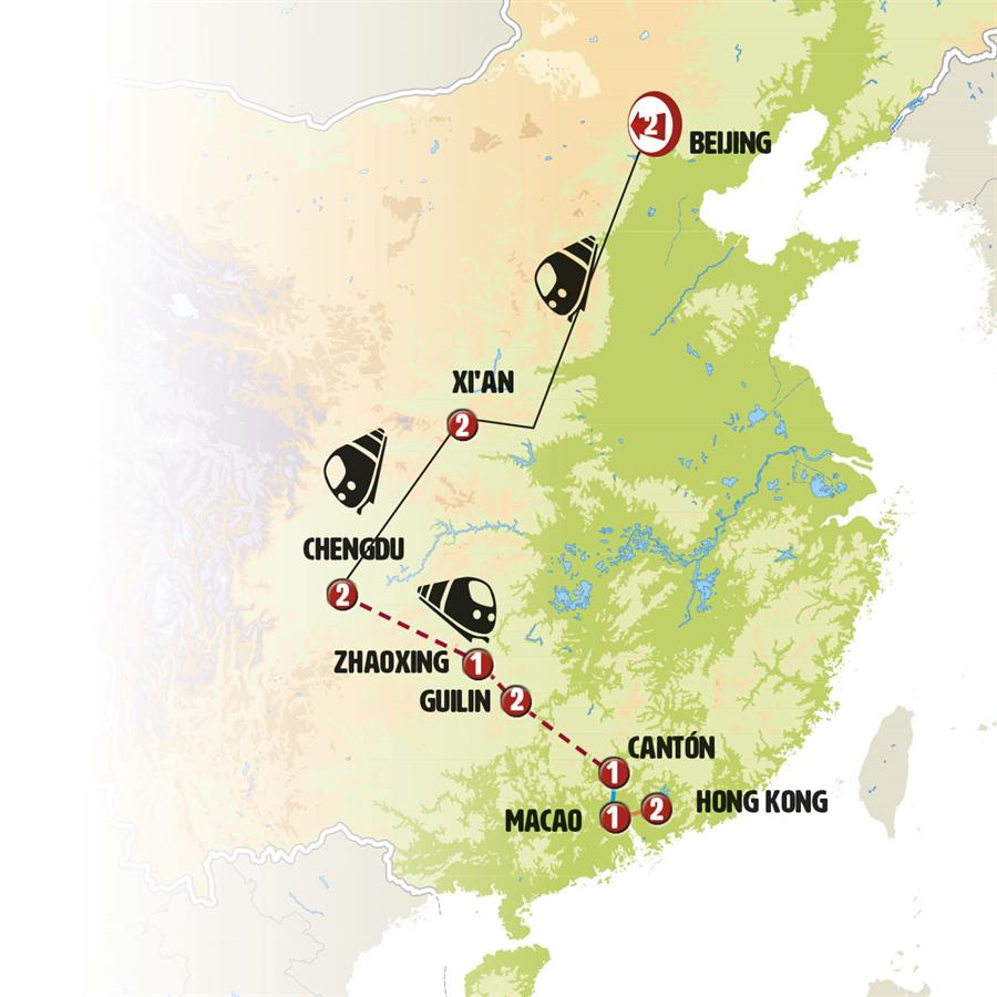 PEKÍN, XIAN, CHENGDU, PUEBLO MIAO, ZHAOXING, GUANGXIAO, CHENGYANG, LONGSHENG, GUILIN, CRUCERO POR EL RÍO LI, YANGSHUO, HUANGYAO, CANTON