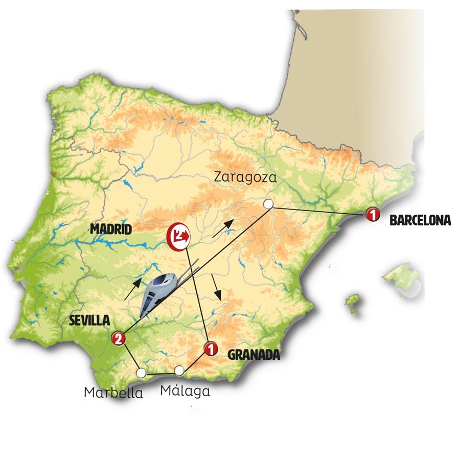 MADRID, GRANADA, NERJA, MÁLAGA, RONDA, SEVILLA, ZARAGOZA, POBLET, BARCELONA
