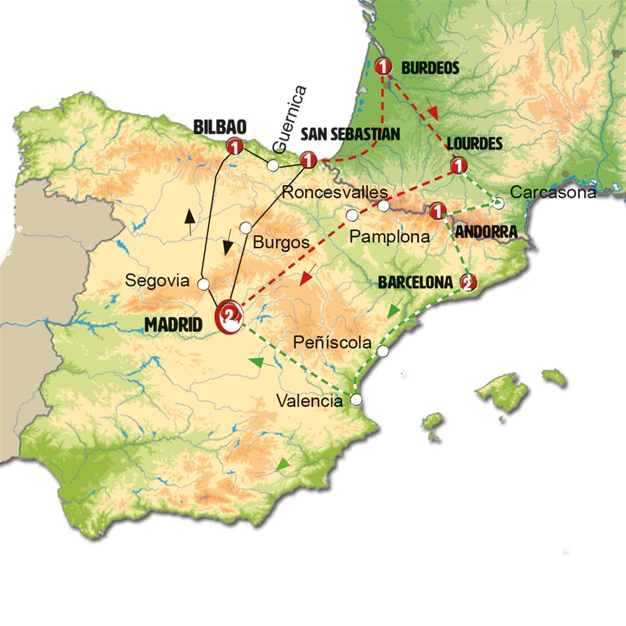 MADRID, SEGOVIA, PEDRAZA, BILBAO, GUERNICA, SAN SEBASTIAN, BURGOS