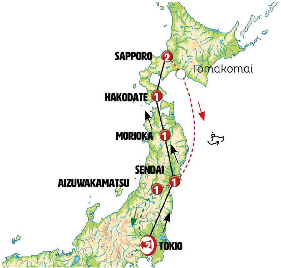 TOKIO, NIKKO, SENDAI, MATSHUSHIMA, HIRAIZUMI, MORIOKA, HIROSAKI, AOMORI, HAKODATE, ONUMA, NOBORIBETSU, SAPPORO