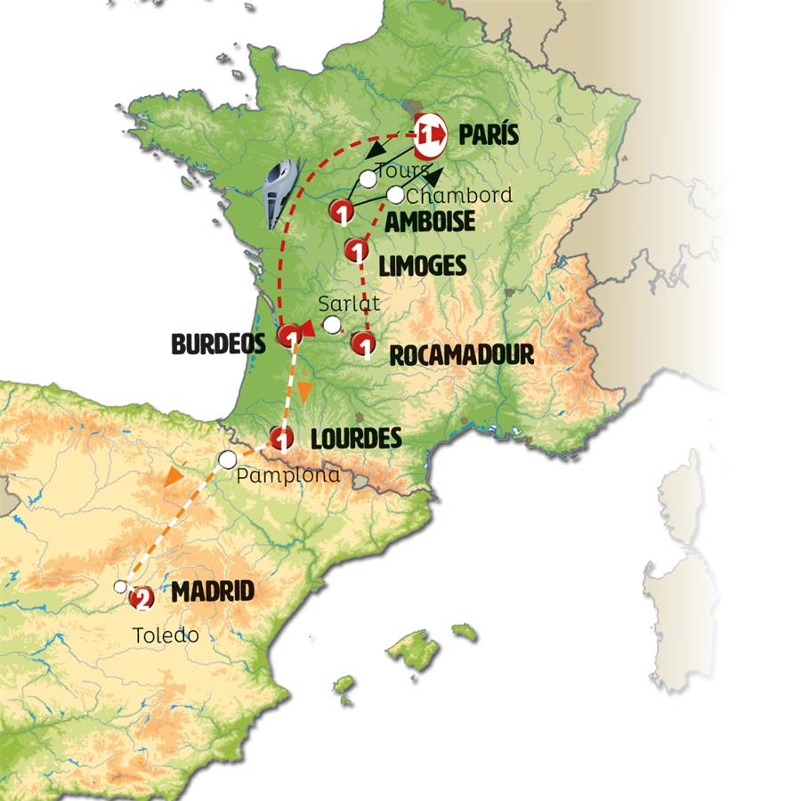 PARÍS, BLOIS, TOURS, VILLANDRY, AMBOISE, CHENONCEAUX, CHAMBORD, LIMOGES, SARLAT, BEYNAC, ROCAMADOUR, PADIRAC, COLLONGES-LA-ROUGE, SAINT-ÉMILION, BURDEOS